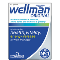 Wellman multivitamin for men with nutrients, specially developed to help maintain overall health and vitality and to provide support in specific areas for men such as maintenance of energy levels - with vitamins B6 and B12 which contribute to normal energy release. Immune system - with vitamins A, C, D, B6, folic acid and copper which contribute to normal immune system function. Brain, heart and vision - DHA and EPA help maintain normal vision, brain function and normal function of the heart. Reproductive health Testosterone Levels - Contains zinc which contributes to the maintenance of normal testosterone levels in the blood. Bone Health- Contains calcium and vitamin D which contribute to the maintenance of normal bones.